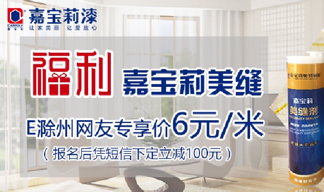 嘉宝莉美缝E滁网友专享加:6元/米 报名成功后,小编会发送短信,凭短信至嘉宝莉门店下单立减100元。 施工前会有专业人员上们免费测量算报价,暂时不施工的话,预交定金可保留本次优惠价格。 活动地址:长江商贸城A区2栋嘉宝莉门店 活动负责:大橙子(微信:jiajuchengzi ) 咨询电话:18900501508